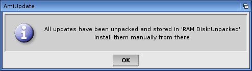 AmiUpdate can be started via Workbench or CLI, and is very easy to use. The default settings are ideally suited for