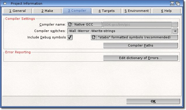compiler switches will be shown, and these are the general project wide ones entered into the