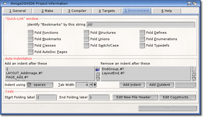 The AmigaOS4SDK project type adds some extra items into the Editor popup menu.