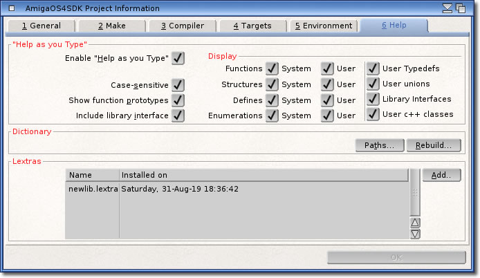 Examples of this might be the SDL libraries or the AmiDark Engine, and would contain detailed help for each