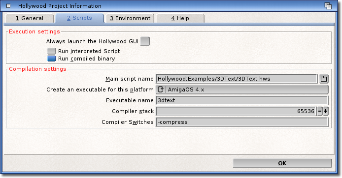 You may supply any switches here to be passed to the Hollywood compiler. Please see the documentation
